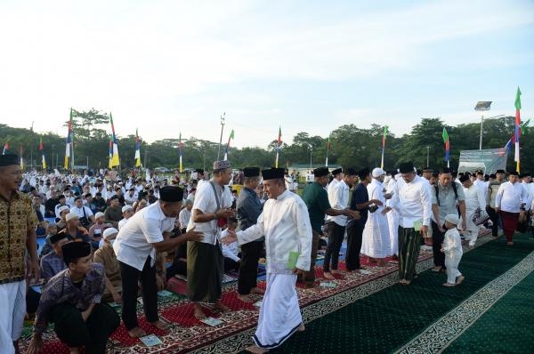 Khatib Salat Idulfitri Ahmad Muzani Al Fadani pada khutbahnya antara lain menyampaikan jika pelajaran di bulan Ramadan ini bisa dipupuk dan terus diaplikasikan dalam kehidupan sehari-hari, setelah Ramdan berakhir, akan tumbuh kedamaian dan persaudaraan yang kokoh di antara sesama.
