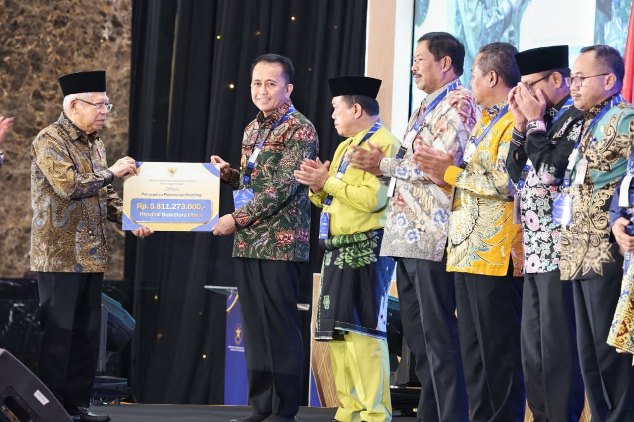 Provinsi Sumatera Utara (Sumut) meraih penghargaan Kinerja Tahun Berjalan Kategori Penurunan Stunting tingkat Provinsi Tahun 2024 karena dinilai telah berhasil menekan angka prevalensi stunting. Penghargaan tersebut diserahkan langsung oleh Wakil Presiden RI Ma’ruf Amin kepada Penjabat (Pj) Gubernur Sumut Agus Fatoni dalam Rapat Koordinasi Nasional (Rakornas) Percepatan Penurunan Stunting di Hotel Grand Sahid Jaya, Jakarta, Rabu (4/9/2024).