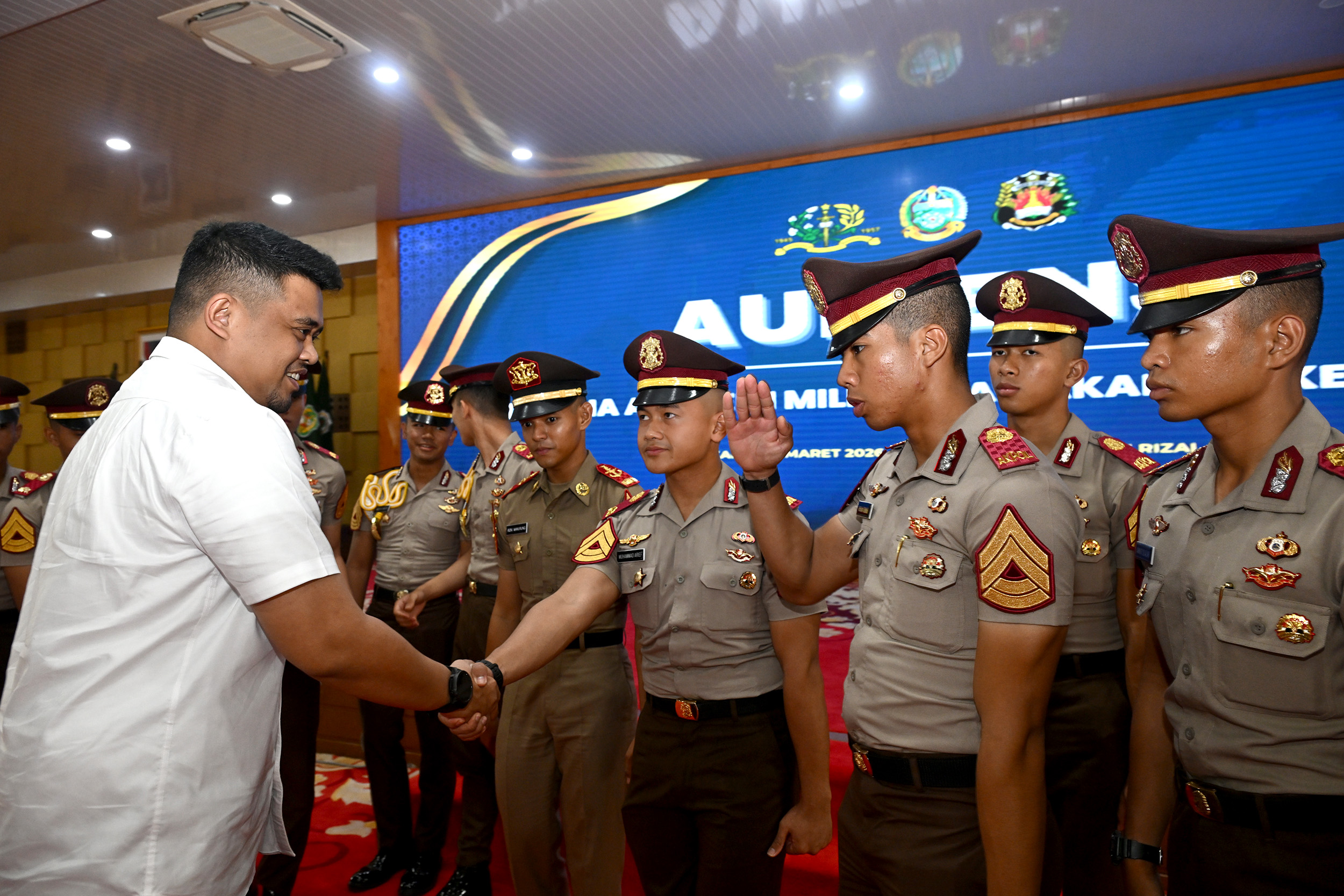 Gubernur Sumatera Utara (Sumut) Muhammad Bobby Afif Nasution menerima kunjungan taruna Akademi Kepolisian (Akpol) dan Akademi Militer (Akmil) di Rumah Dinas Gubernur, Jalan Diponegoro, Medan, Kamis (19/3/2026). Dalam pertemuan tersebut, Bobby menyampaikan sejumlah pesan penting kepada para taruna.
