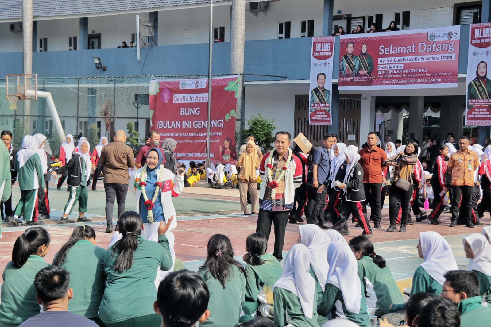 Penjabat (Pj) Gubernur Sumatera Utara (Sumut) Agus Fatoni terus mendorong pemberian Tablet Tambah Darah (TTD) serentak bagi remaja putri guna pencegahan stunting sejak dini. Hal tersebut disampaikannya dalam kegiatan GenRe In Action ‘INI GENTING’ (Implementasi Nyata GenRe Cegah Stunting) di halaman SMA Negeri 3, Medan, Sumut, Kamis (22/8/2024).