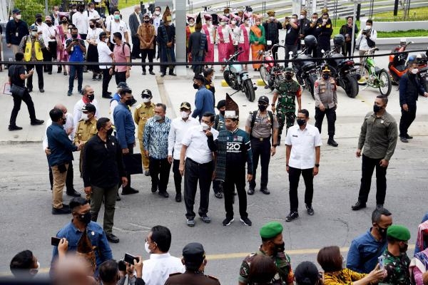 Turut bersama Presiden dan Gubernur, Menteri Koordinasi Bisang Kemaritiman dan Investasi Luhut Binsar Pandjaitan, Menteri Pekerjaan Umum dan Perumahan Rakyat (PUPR) Basuki Hadimuljono, dan Menteri Pariwisata dan Ekonomi Kreatif Sandiaga Uno. Rombongan tiba di Kawasan Pantai Bebas Parapat menggunakan sepeda motor. Setibanya di kawasan tersebut, rombongan disambut masyarakat yang sudah menunggu sejak pagi.**(H17/DISKOMINFO SUMUT)
