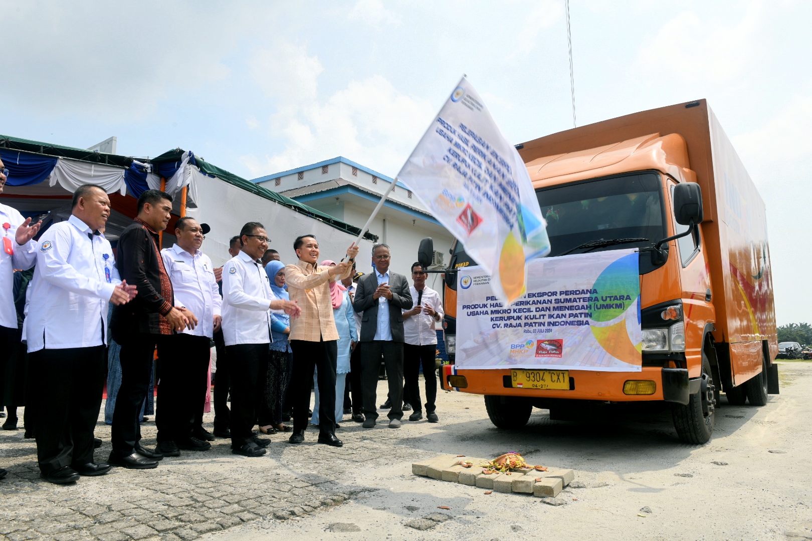 Penjabat (Pj) Gubernur Sumatera Utara (Sumut) Agus Fatoni melakukan pelepasan ekspor perdana kerupuk kulit ikan patin sebanyak 2.500 kg produksi UMKM ke Malaysia. Dia berharap kegiatan ini mampu mendorong UMKM lain untuk memanfaatkan peluang ekspor di pasar global yang besar.