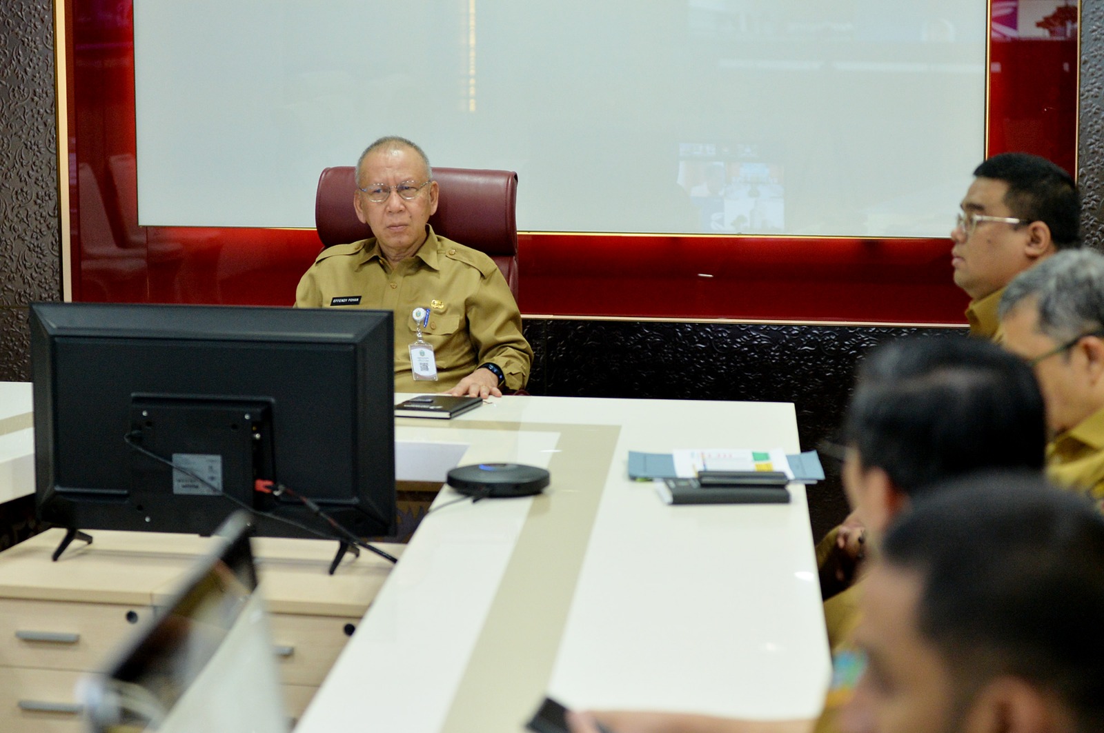 Hadir pada rapat ini secara virtual Kepala BPS Amalia Adininggar Widyasanti, Kepala Bappenas Rachmat Pambudy dan Wamendagri Bima Arya. Hadir juga para bupati/walikota dan gubernur se-Indonesia, Plt Deputy II Kepala Staff Kepresidenan, jajaran Kemendagri dan Menko Pangan. **(H15/DISKOMINFO SUMUT)