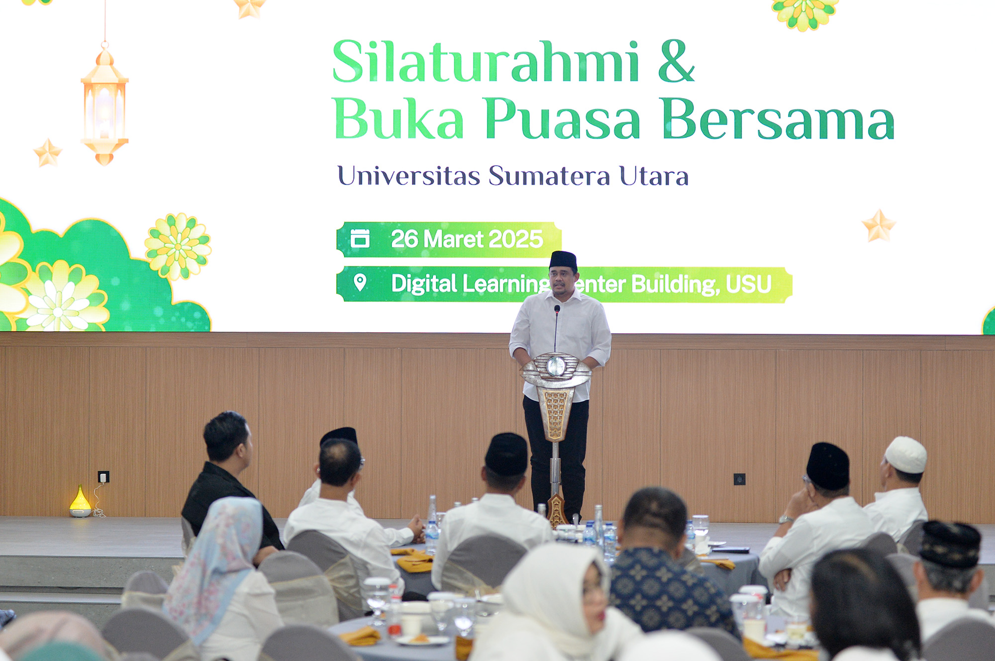 Hal tersebut disampaikan Bobby Nasution pada acara Silaturahmi dan Buka Puasa Bersama dengan USU, yang berlangsung di Aula Gedung Digital Learning Center Building USU, Rabu (26/3/2025). Diharapkan kolaborasi yang terjalin dengan USU ini nantinya menghasilkan program pembangunan yang terbaik untuk masyarakat Sumut.