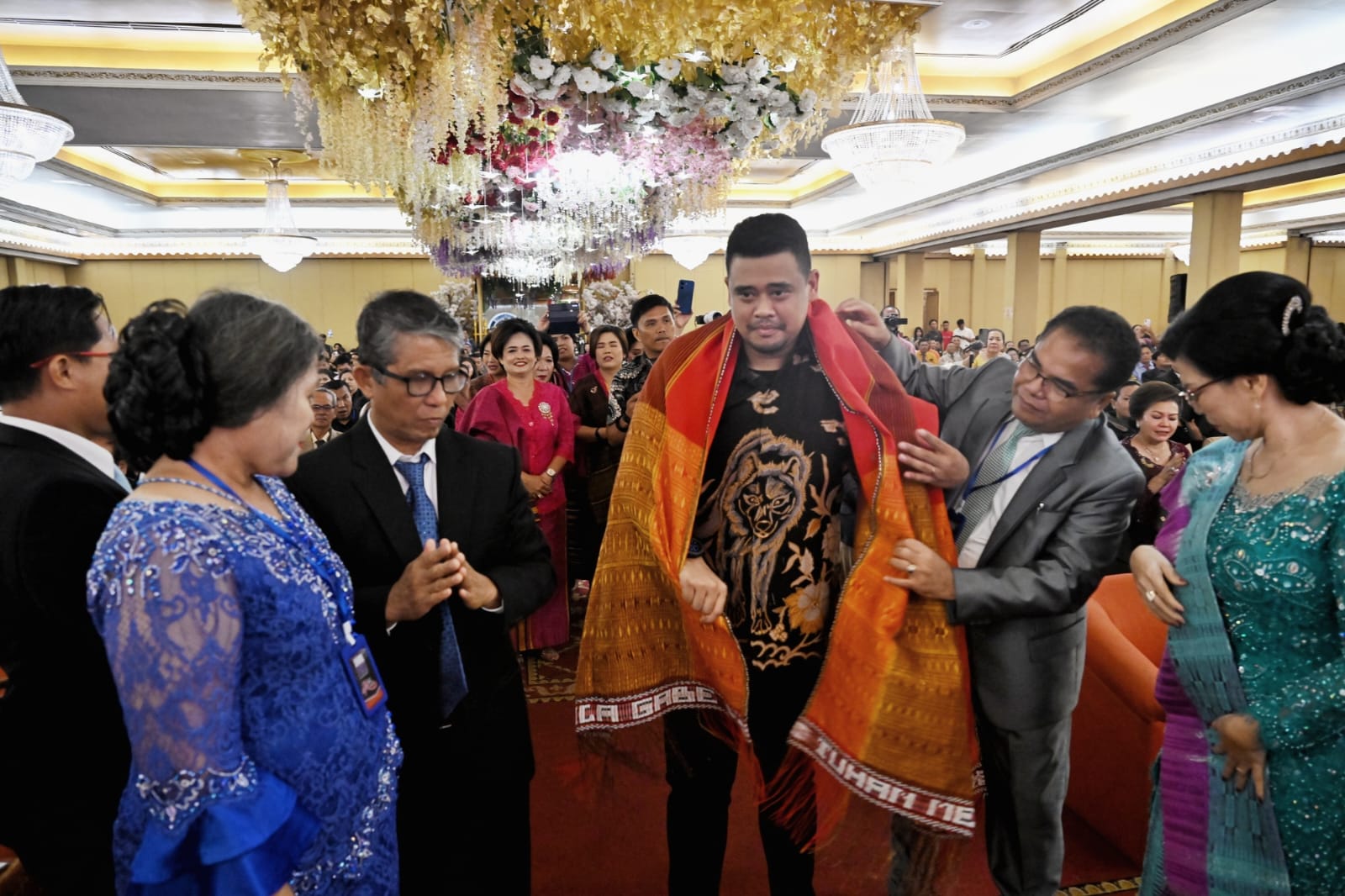 Kegiatan tersebut juga diisi dengan penyematan ulos sebagai tanda penghormatan dari HKI kepada Gubernur Bobby Nasution. Acara turut dihadiri Ephorus HKI Pdt Firman Sibarani, perwakilan Kementerian Agama RI Mangarerak Barimbing, Ketua Umum Persekutuan Gereja-gereja di Indonesia (PGI) Jacklevyn Manuputty, serta para undangan lainnya.