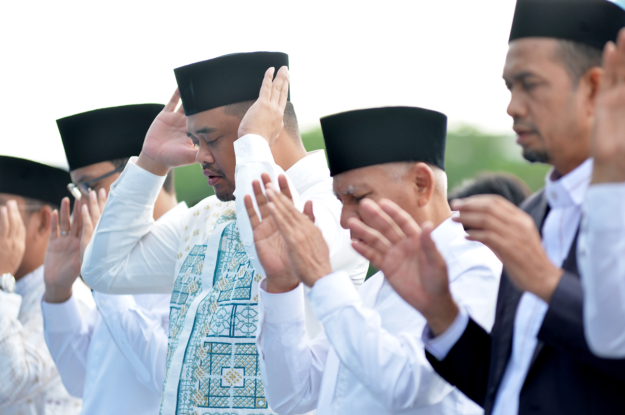 Gubernur Sumatera Utara (Sumut) Bobby Nasution bersama Wakil Gubernur (Wagub) Sumut Surya melaksanakan Salat Idulfitri 1446 H bersama ribuan masyarakat Kota Medan, di Lapangan Merdeka Medan, Jalan Pulau Pinang, Senin (31/3) pagi. Salat Idulfitri dipimpin Ahmad Azroi Hasibuan sebagai imam dan Ketua MUI Kota Medan Hasan Matsum sebagai khatib, berlangsung khusyuk.