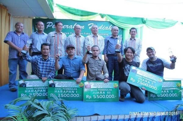 Juara II Hermansyah Putra (Menatap Pulo Samosir) dari Harian Andalas hadiah Rp 6.500.000, Juara III Khairil Umri (Tahun Songket Sumut) dari Harian Analisa hadiah Rp 5.500.000, Harapan I Surya Efendi (Orkes Melayu) dari Harian Waspada hadiah Rp 3.500.000 dan Harapan II Septianda Perdana (Berwisata Religi) dari Berita Antara hadiah Rp 2.500.000. Para pemenang akan memperoleh Piagam dan Piala Penghargaan. Pemprovsu juga memberikan apresiasi Foto Terbaik masing-masing Rp 500.000 kepada T Agus Khaidir, Qodrat Al Qadri, Roemono, Rahmad Suryadi, Aldi Aulia Anwar, M. Said Harahap dan Arifin Alamudi.