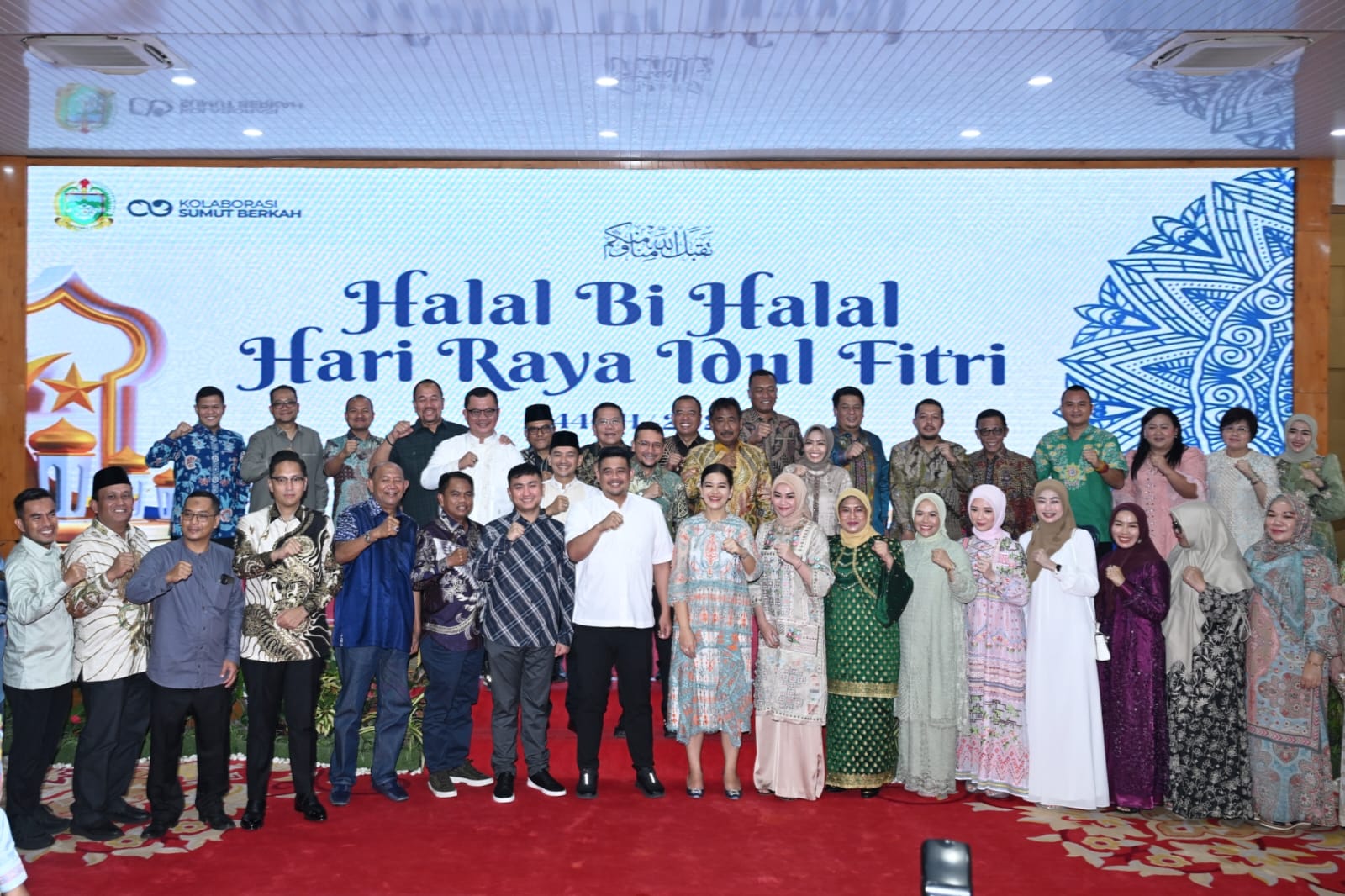 Gubernur Sumatera Utara (Sumut) Muhammad Bobby Afif Nasution halalbihalal Hari Raya Idulfitri 1446 Hijriah bersama seluruh kepala daerah se-Sumut. Open house hari ke dua ini berlangsung di Aula Tengku Rizal Nurdin, Jalan Sudirman Nomor 41 Medan, Selasa (1/4).