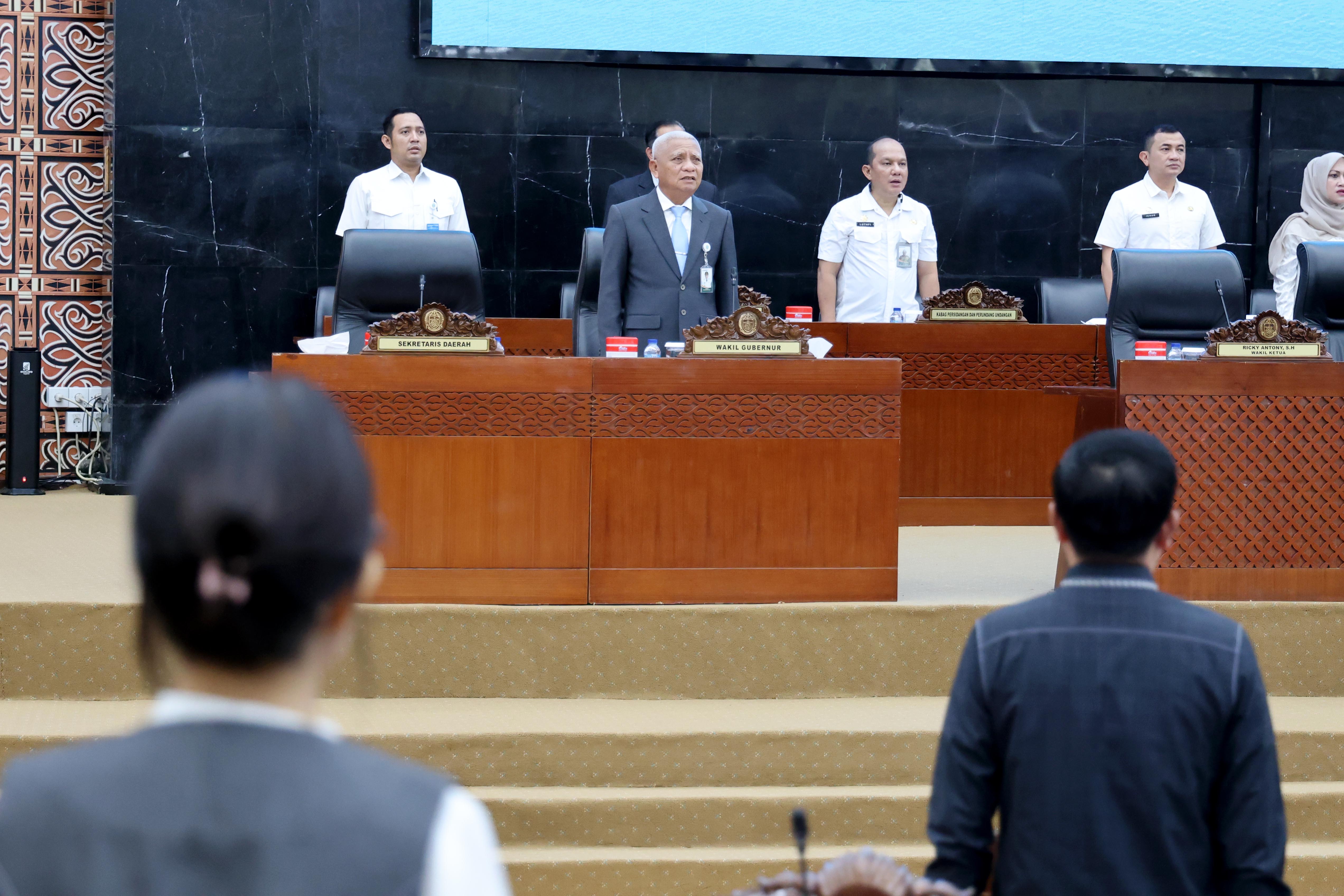 “Untuk selanjutnya saya akan sampaikan kepada Pak Gubernur, supaya ini secepatnya Pergub Penjabaran APBD 2026 berlaku sesuai dengan apa tertuang dalam keputusan atau Perda APBD,” ujar Wagub usai mengikuti paripurna.