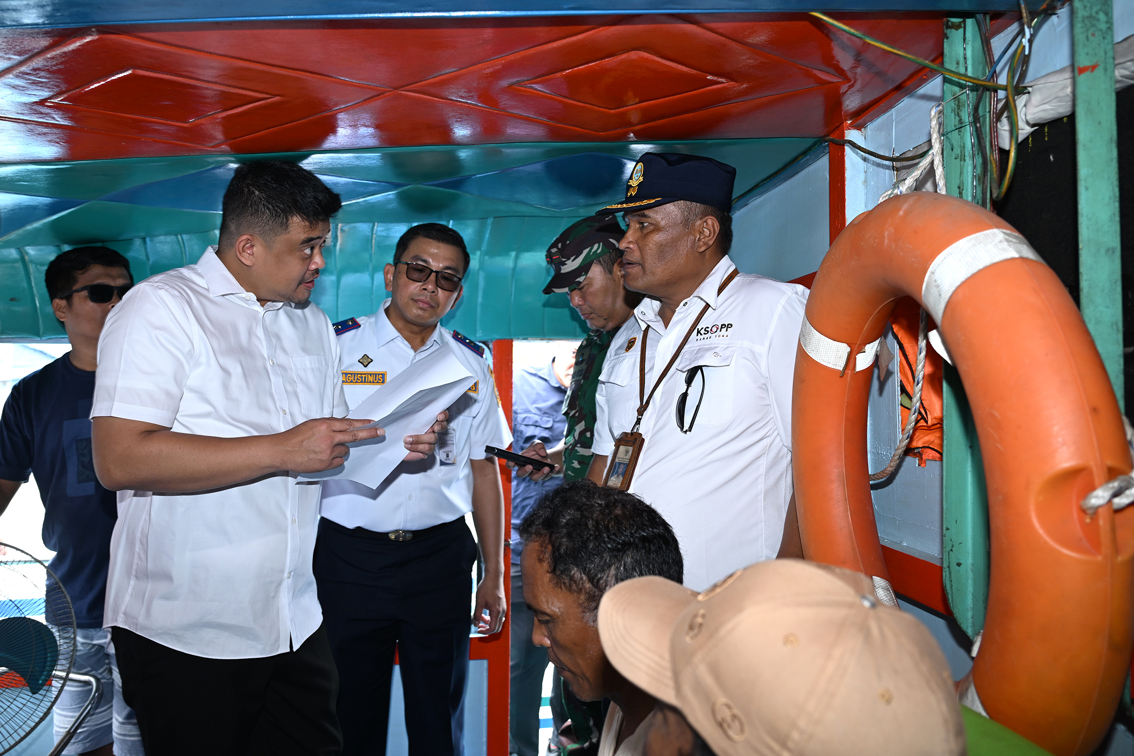 Tiba di pelabuhan, Bobby Nasution langsung menuju lokasi bersandar sejumlah kapal penyeberangan penumpang, sekaligus naik dan masuk ke dalamnya, untuk memeriksa kelengkapan izin dan standarisasi keamanan kapal.