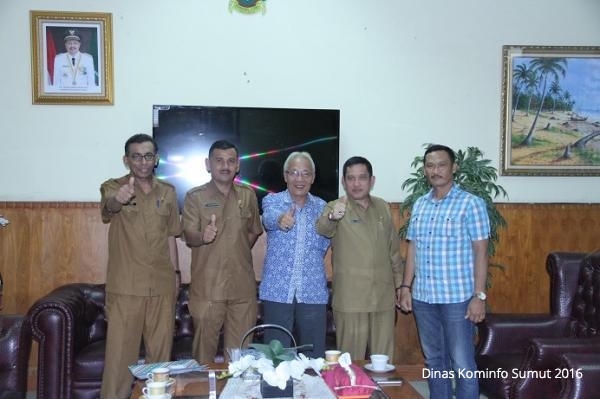 Medan, Kepala Dinas Komunikasi dan Informatika Provinsi Sumatera Utara (Kadis Kominfo Provsu) Drs. H. MHD. Fitriyus, SH, MSP didampingi Sekretaris Dinas Kominfo Provsu H. M. Ayub, SE menerima audiensi Wakil Ketua dan anggota Dewan Perwakilan Rakyat Daerah (DPRD) Kabupaten Nias Barat di Ruang Kerja Kadis Kominfo Provsu, Selasa (28/02).