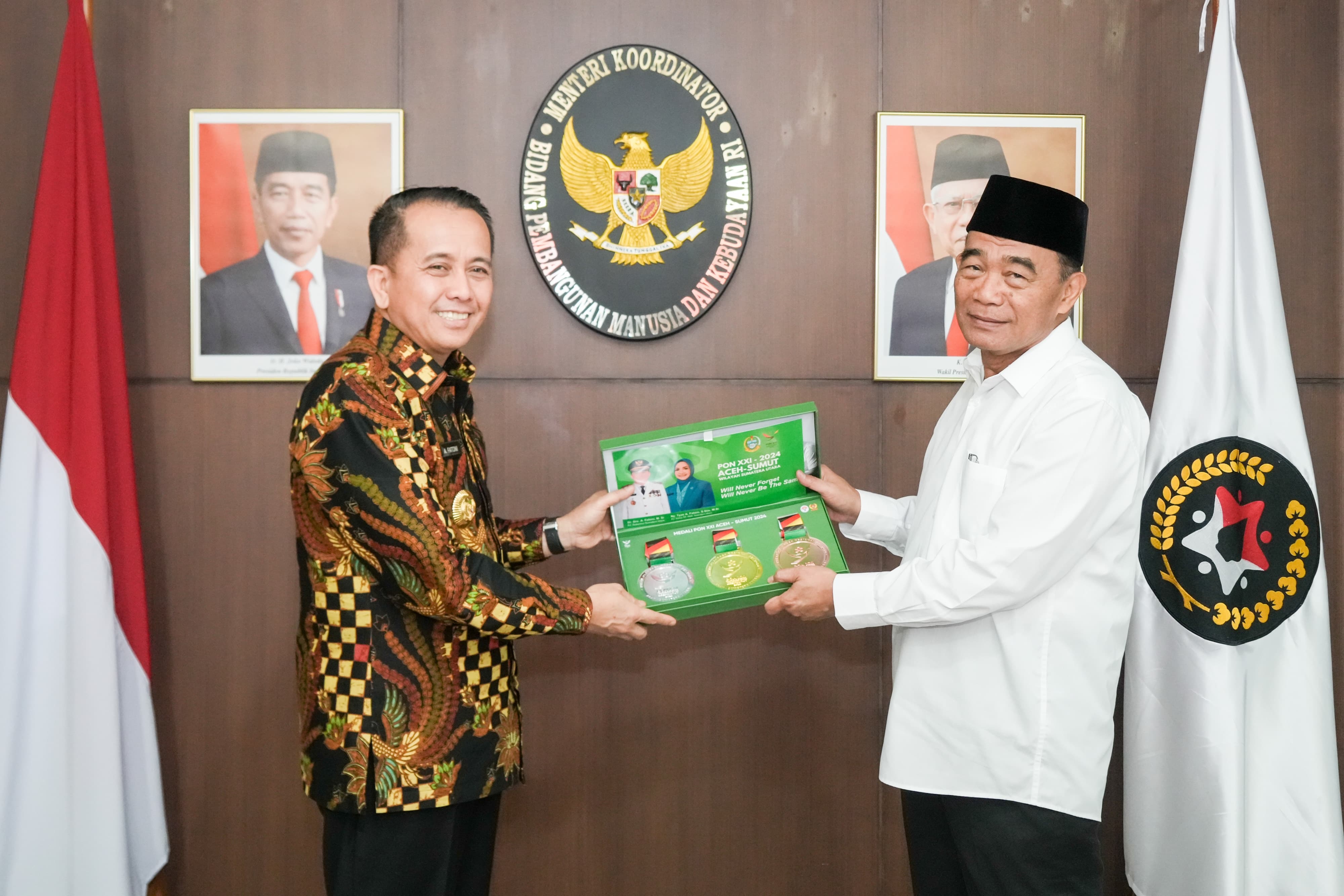 Menteri Koordinator Bidang Pembangunan Manusia dan Kebudayaan (Menko PMK) Muhadjir Effendy mengapresiasi Penjabat (Pj) Gubernur Sumatera Utara (Sumut) Agus Fatoni atas kesuksesan penyelenggaraan Pekan Olahraga Nasional (PON) XXI Aceh-Sumut. Hal tersebut disampaikannya saat menerima kunjungan silahturahmi dari Pj Gubernur Sumut Agus Fatoni dan Panitia Besar (PB) PON XXI Wilayah Sumut di Kantor Kemenko PMK, Jakarta, Jumat (27/9/2024).