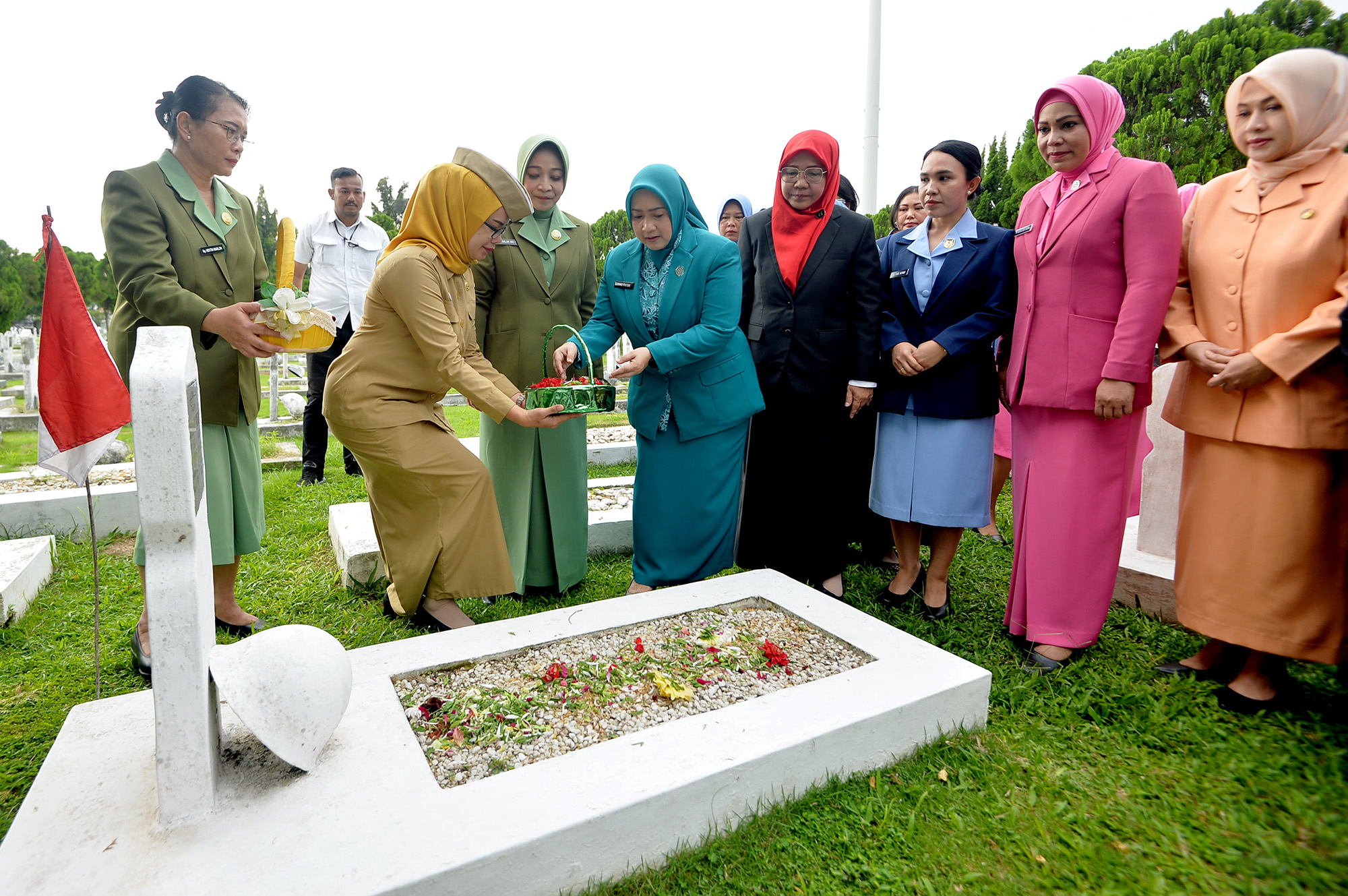 Menyambut Hari Ibu yang diperingati setiap tahunnya pada 22 Desember, Penjabat (Pj) Ketua Tim Penggerak (TP) Pemberdayaan Kesejahteraan Keluarga (PKK) Provinsi Sumatera Utara (Sumut) Tyas Fatoni bersama unsur Dharma Wanita Persatuan (DWP) Sumut melaksanakan upacara dan ziarah ke makam Pahlawan. Kegiatan berlangsung di Taman Makam Pahlawan (TMP) Bukit Barisan, Jalan SM Raja Medan, Senin (16/12/2024).