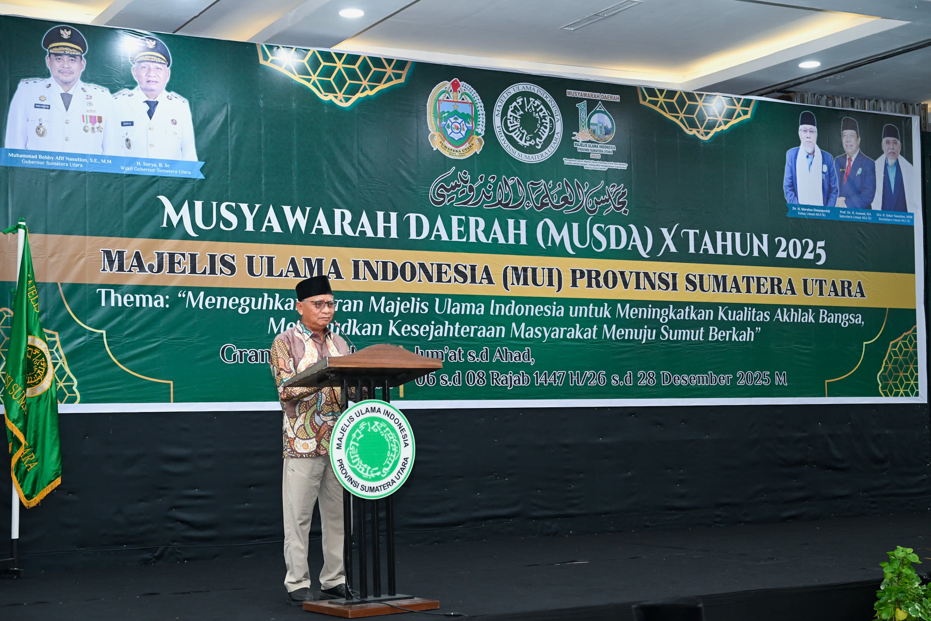 Hal tersebut disampaikan Wakil Gubernur (Wagub) Sumut Surya saat membuka Musyawarah Daerah (Musda) X Tahun 2025 MUI Sumatera Utara, di Grand Inna Medan, Jalan Balai Kota Nomor 2 Medan, Jumat (26/12/2025).