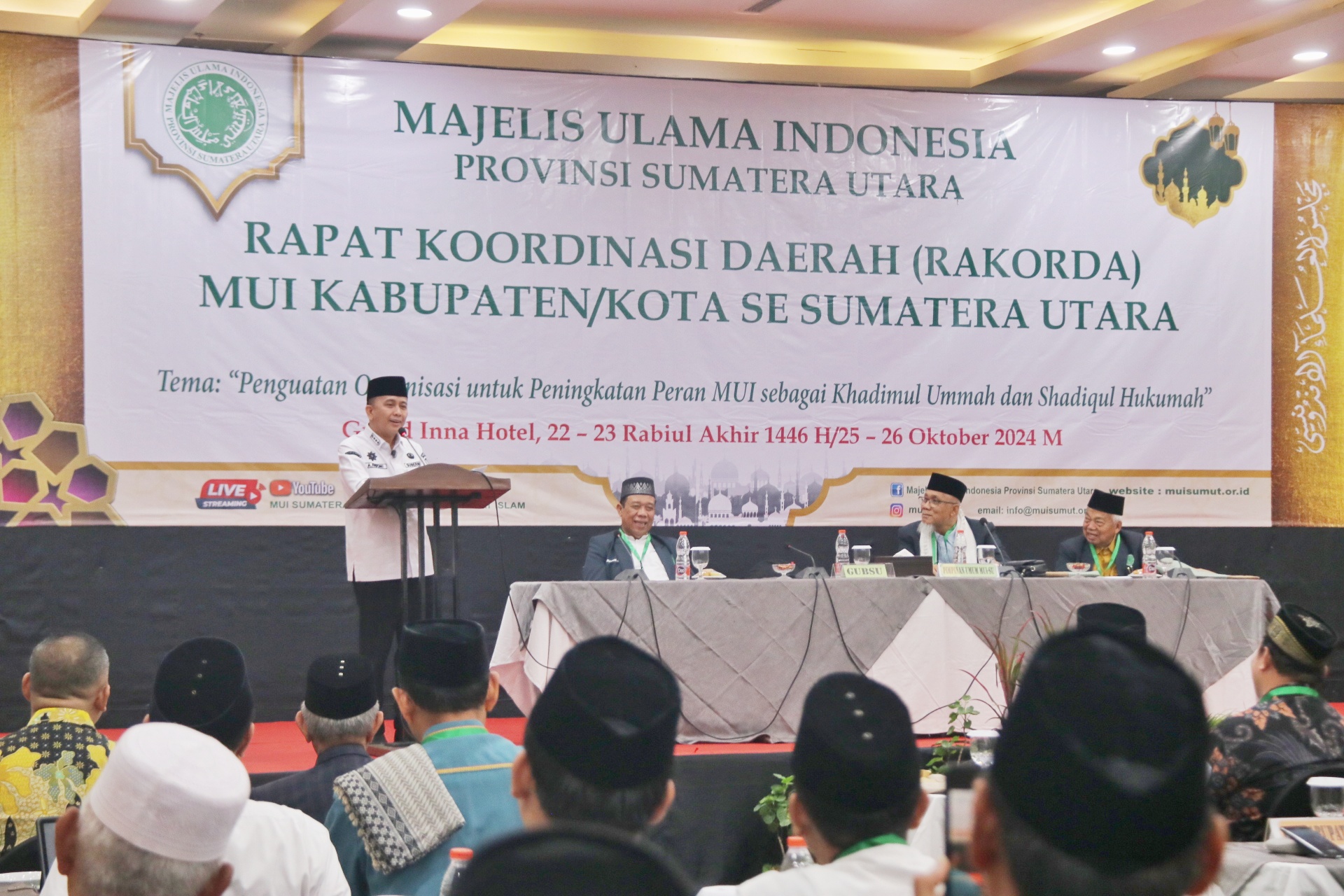 Penjabat (Pj) Gubernur Sumatera Utara (Sumut) Agus Fatoni berharap Majelis Ulama Indonesia (MUI) Sumut dapat terus memberikan kontribusi positif bagi masyarakat dan juga kebijakan pemerintah. Hal ini disampaikan Fatoni dalam kegiatan Rapat Koordinasi Daerah (Rakorda) MUI Kabupaten/Kota se-Sumut di Grand Inna Medan, Medan, Sumut, Jumat (25/10/2024).