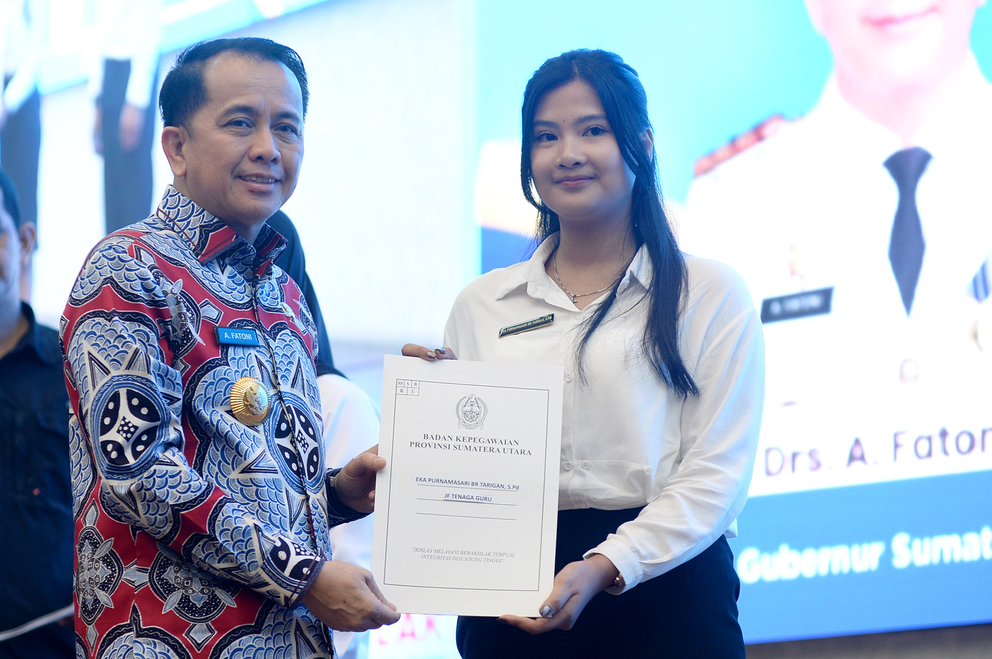 “Anda semua orang terpilih, dari 23.975 orang yang mengikuti tes, terpilih 2.271, Sumut harus bisa lebih baik lagi dengan kehadiran bapak/ibu adik-adik semua,” kata Fatoni.