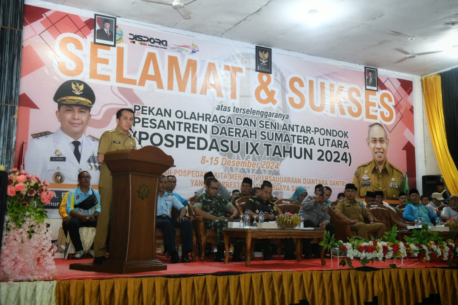 Penjabat (Pj) Gubernur Sumatera Utara (Sumut) Agus Fatoni membuka Pekan Olahraga dan Seni Antar Pondok Pesantren Daerah (Pospeda) Sumatera Utara IX Tahun 2024. Kegiatan ini berlangsung di Pondok Pesantren Raudhatul Hasanah (Raudoh), Jalan Setia Budi Medan, Senin (9/12/2024) sore.