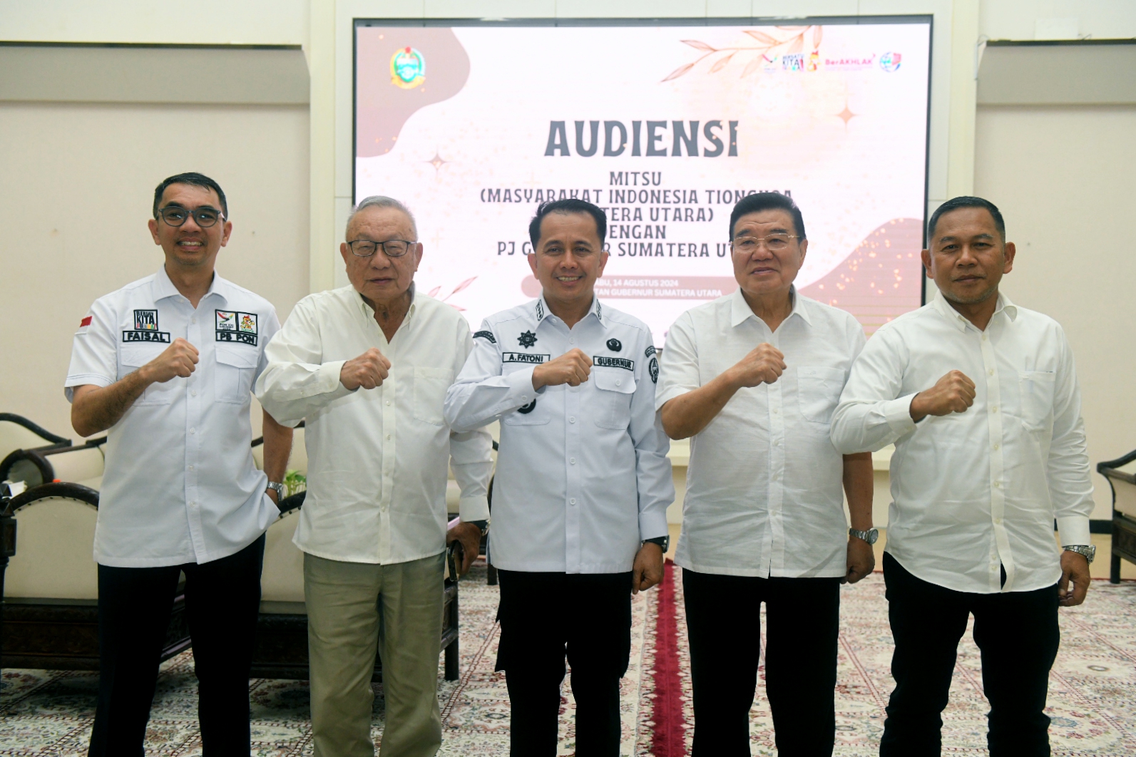 Penjabat (Pj) Gubernur Sumatera Utara (Sumut) Agus Fatoni mengapresiasi Perhimpunan Masyarakat Indonesia Tionghoa Sumut (MITSU) yang memberikan dukungan penuh untuk kesuksesan PON XXI Aceh-Sumut. Hal ini diungkapkannya saat menerima audiensi dari Perhimpunan MITSU di Rumah Dinas Gubernur Sumut, Medan, Sumut, Rabu (14/8/2024).