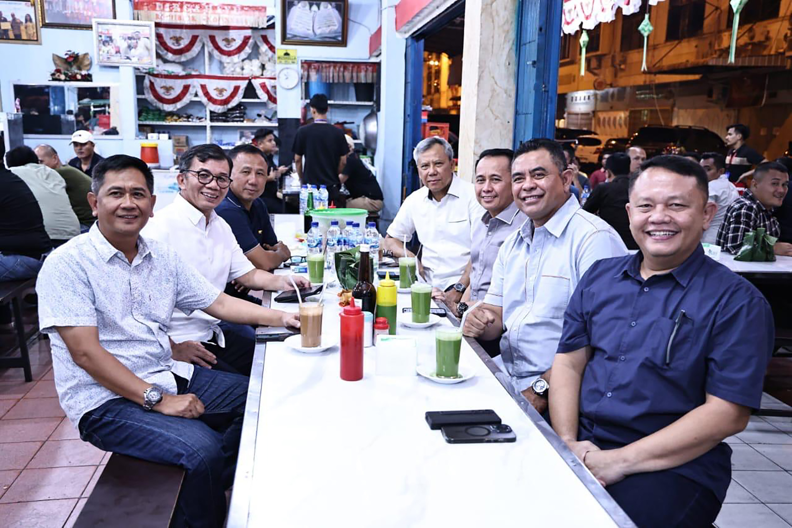 Penjabat (Pj) Gubernur Sumatera Utara (Sumut) Agus Fatoni bersama Forum Koordinasi Pimpinan Daerah (Forkopimda) menunjukkan kesederhanaannya dengan ‘ngopi’ bareng di salah satu warung kopi (warkop). Dalam kesempatan tersebut, mereka membahas terkait perkembangan Sumatera Utara.