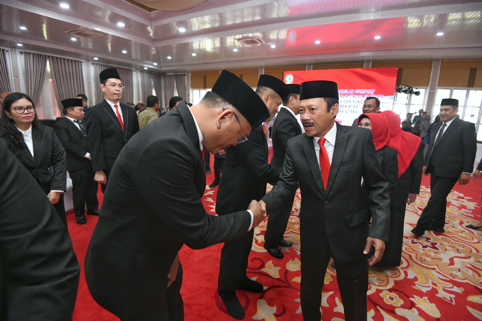 Penjabat (Pj) Gubernur Sumatera Utara (Sumut) Agus Fatoni melakukan rotasi dan pengisian jabatan yang kosong di lingkungan Pemerintah Porivinsi (Pemprov) Sumut. Pelantikan dilakukan oleh Sekretaris Daerah Provinsi (Sekdaprov) Sumut Arief S Trinugroho di Aula Tengku Rizal Nurdin, Medan, Sumut, Jum'at (8/11/2024).