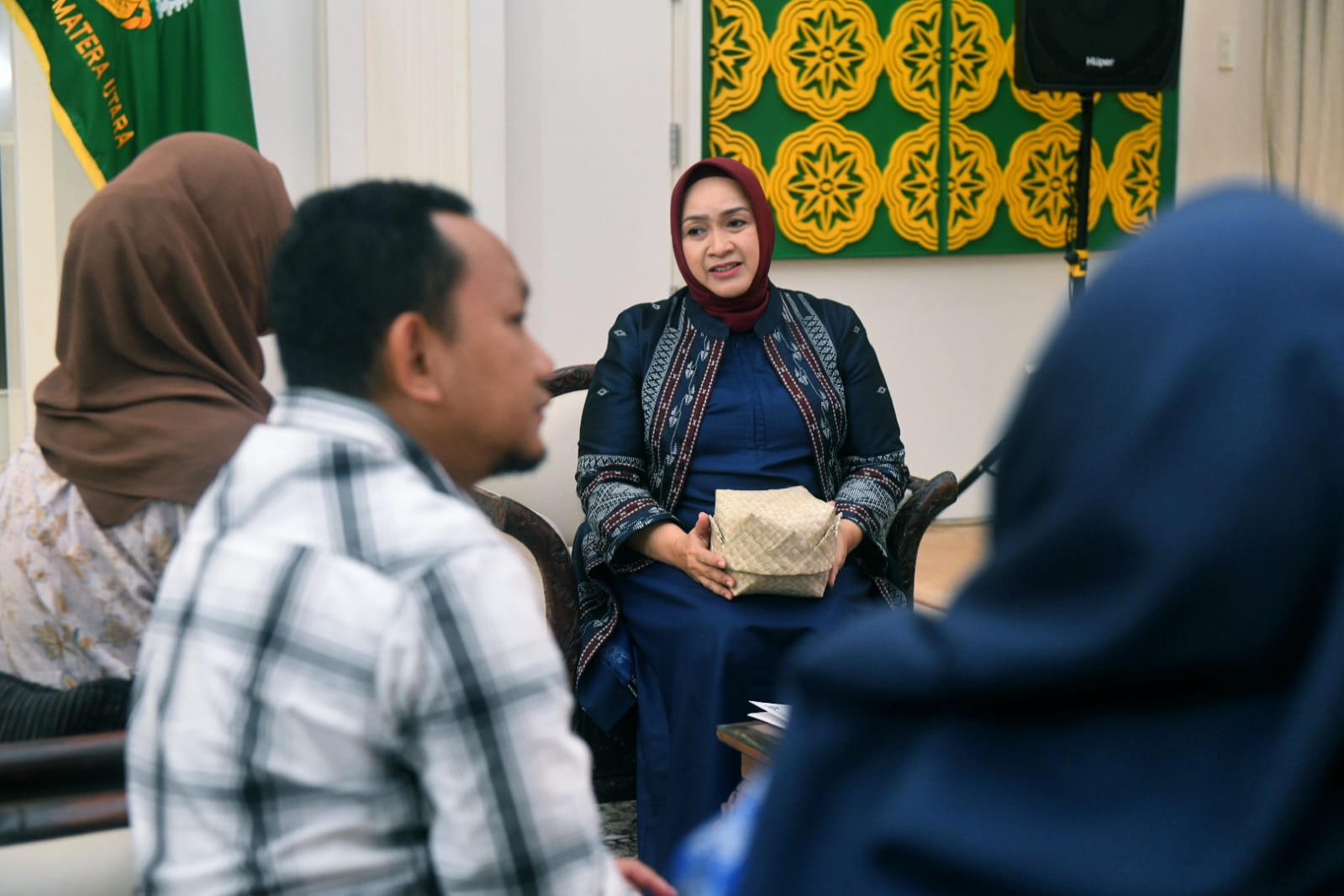 Penjabat (Pj) Ketua Dewan Kerajinan Nasional Daerah (Dekranasda) Sumatera Utara (Sumut) Tyas Fatoni mendukung perajin anyaman asal Kabupaten Serdang Bedagai Eva Harlia yang mewakili Sumut berkompetisi di Asta Kriya Nusantara 2024. Hal ini diungkapkannya saat menerima audiensi dari Eva Harlia di Rumah Dinas Gubernur, Medan, Sumut, Minggu (18/8/2024).