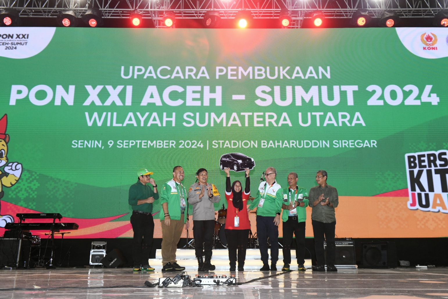 Meski pembukaan utama dilakukan di Aceh, pembukaan di Sumut ini tidak kalah meriah. Tampak ribuan masyarakat hadir memenuhi stadion.