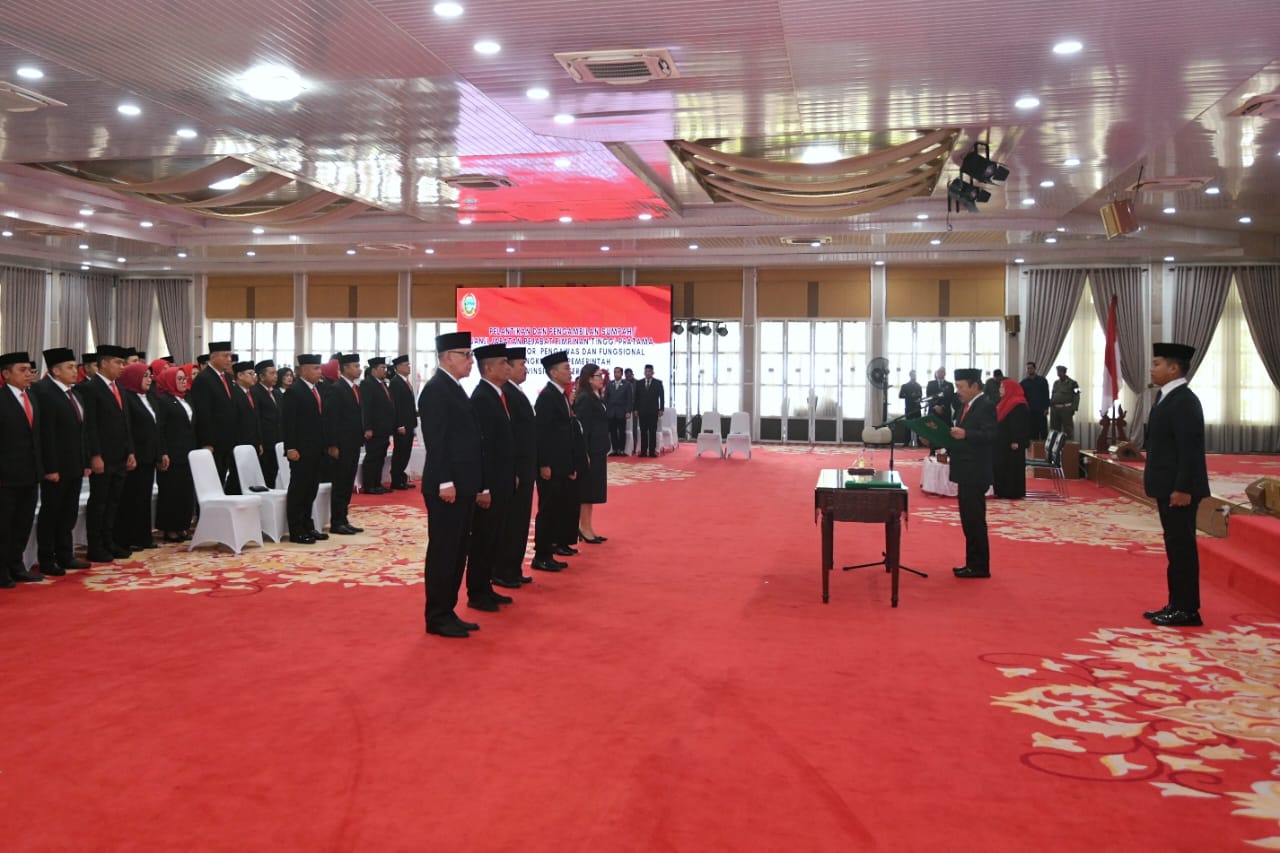 Penjabat (Pj) Gubernur Sumatera Utara (Sumut) Agus Fatoni diwakili Sekretaris Daerah Provinsi (Sekdaprov) Arief S Trinugriho secara resmi melantik pejabat pimpinan tinggi administrator, pengawas dan fungsional di lingkungan Pemerintah Provinsi (Pemprov) Sumut, di Aula Tengku Rizal Nurdin, Medan, Sumut, Jumat (8/11/2024).