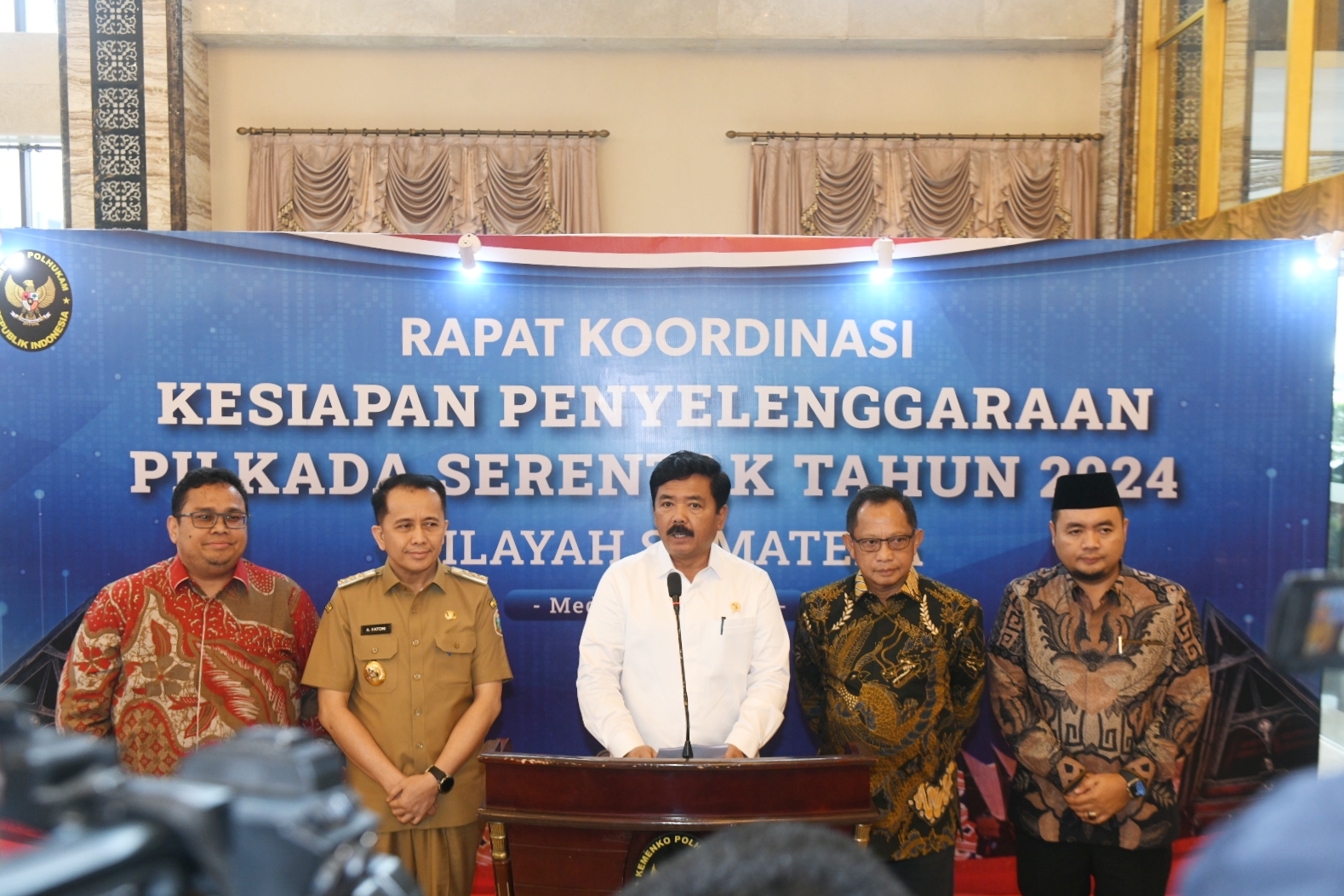 Senada dengan Mendagri, Menteri Koordinator Bidang Politik, Hukum dan Keamanan Republik Indonesia (Menkopolhukam) Hadi Tjahjanto meminta kepala daerah se-Pulau Sumatera, TNI, Polri dan unsur masyarakat untuk bersinergi menyukseskan Pilkada serentak. Dia berharap stabilitas politik hukum dan keamanan perlu dijaga sebaik mungkin.