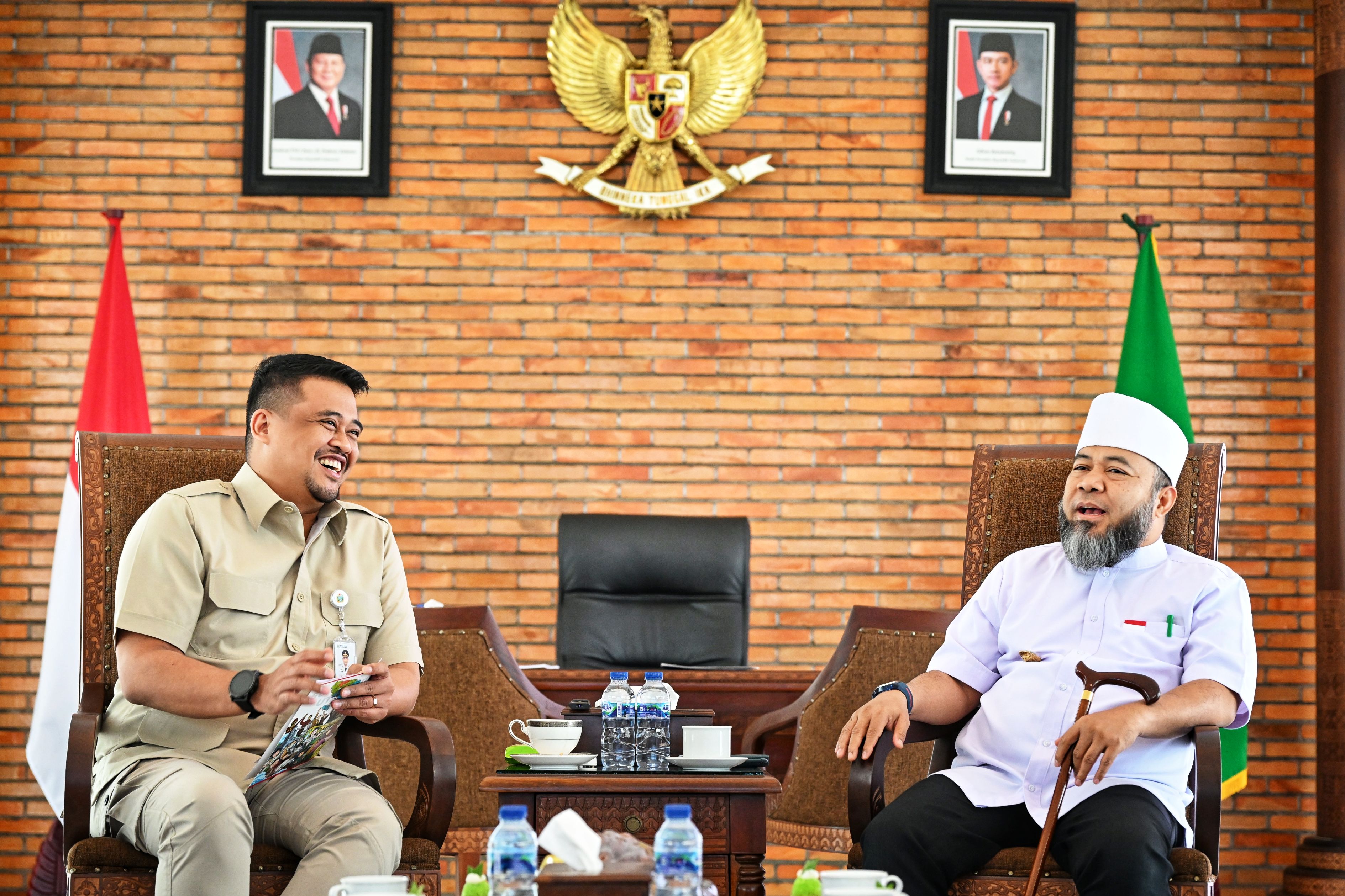 Gubernur Sumatera Utara (Sumut) Muhammad Bobby Afif Nasution menerima kunjungan Gubernur Bengkulu Helmi Hasan di Anjungan Lantai 9, Kantor Gubernur, Jalan Diponegoro Nomor 30, Medan, Selasa (14/10/2025). Pada kesempatan tersebut, Bobby mengajak untuk berkolaborasi.