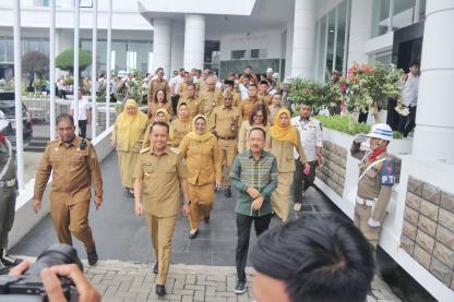 DELISERDANG Penjabat (Pj) Gubernur Sumatera Utara (Sumut) Agus Fatoni bersama Forkopimda menyambu....
