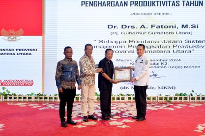 Pj Gubernur Sumut Agus Fatoni Terima Penghargaan Pembina Produktivitas dari Kemenaker