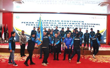 *Pj Gubernur Agus Fatoni Lepas Kontingan PWI Sumut ke Porwanas XIV Banjarmasin*