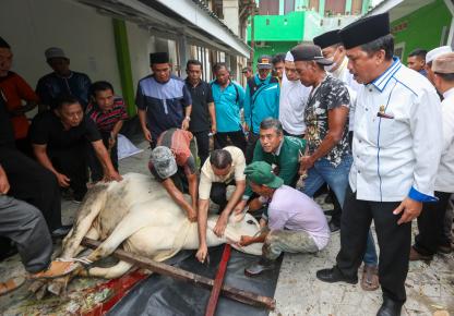 Musa Rajekshah Ikut Sembelih Hewan Kurban Kemenag Kota Medan