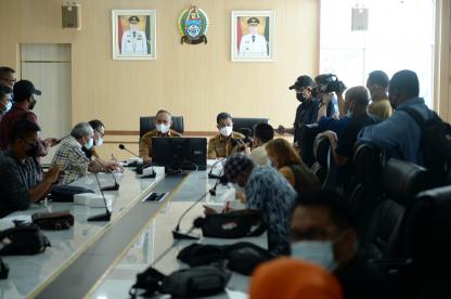 MEDANGubernur Sumatera Utara (Sumut) Edy Rahmayadi memimpin rapat koordinasi penanggulangan Covid-19....