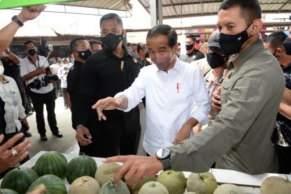 Edy Rahmayadi Dampingi Jokowi Bagikan Bantuan Modal di Pasar Kebun Lada Binjai