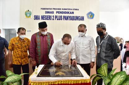MADINA Gubernur Sumatera Utara (Sumut) Edy Rahmayadi meresmikan revitalisasi Gedung SMA Negeri 2 Plu....