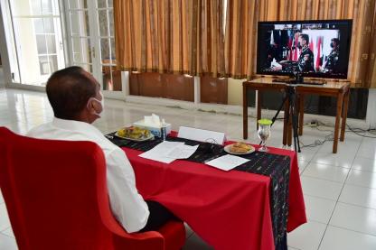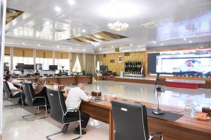 TOBA Gubernur Sumatera Utara (Sumut) Edy Rahmayadi mengikuti pertemuan konferensi video jarak jau....