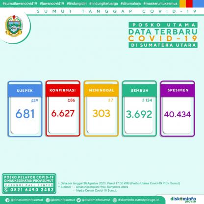 Posko Utama Data Terbaru Covid-19 di Sumatera Utara 28 Agustus