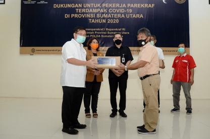 MEDAN Pemerintah Pusat melalui Kementerian Pariwisata dan Ekonomi Kreatif RI menyalurkan bantuan ....