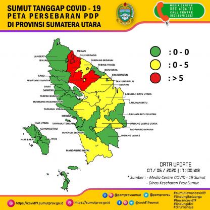 Peta Persebaran PDP di Provinsi Sumatera Utara 7 Juni 2020