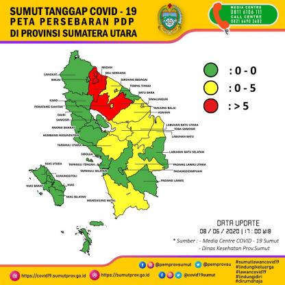 Peta Persebaran PDP di Provinsi Sumatera Utara 6 Juni 2020