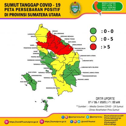Peta Persebaran Positif di Provinsi Sumatera Utara 7 Juni 2020