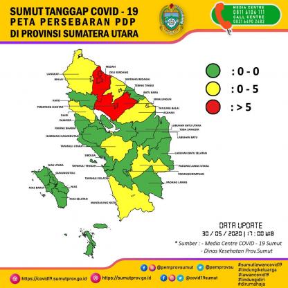 Peta Persebaran PDP di Provinsi Sumatera Utara 30 Mei 2020