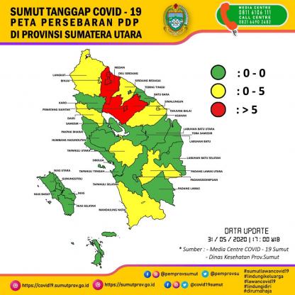 Peta Persebaran PDP di Provinsi Sumatera Utara 31 Mei 2020