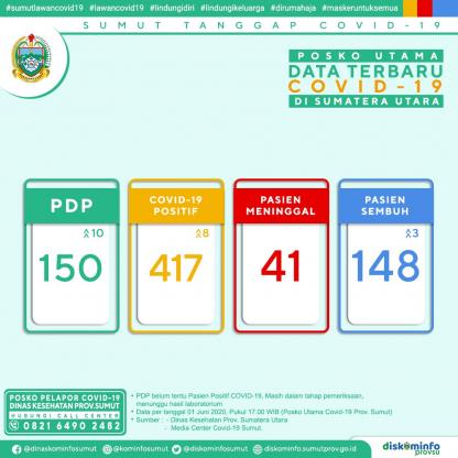 Posko Utama Data Terbaru Covid-19 di Sumatera Utara 1 Juni 2020
