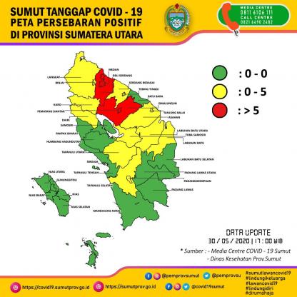Peta Persebaran Positif di Provinsi Sumatera Utara 30 Mei 2020
