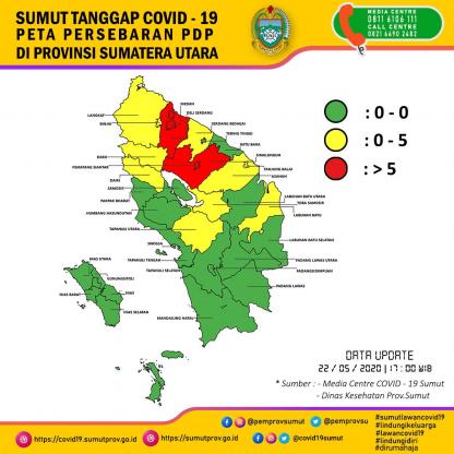 Peta Persebaran PDP di Provinsi Sumatera Utara 22 Mei 2020