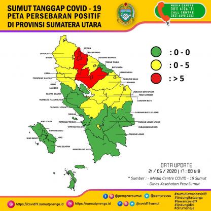 Peta Persebaran Positif di Provinsi Sumatera Utara 21 Mei 2020
