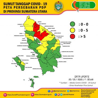 Peta Persebaran PDP di Provinsi Sumatera Utara 20 Mei 2020
