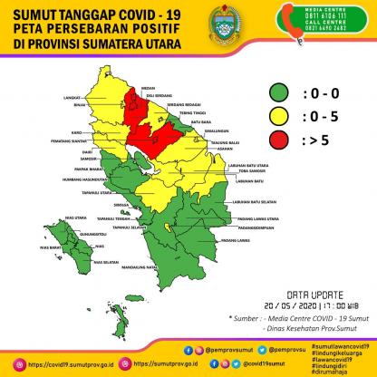 Peta Persebaran Positif di Provinsi Sumatera Utara 20 Mei 2020